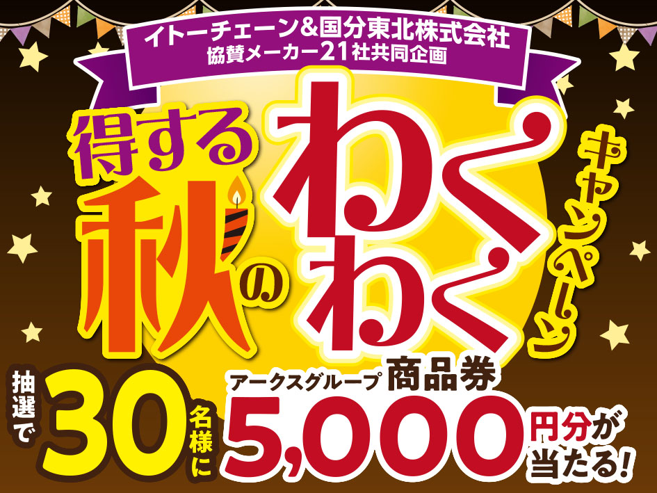 イトーチェーン各店にて協賛メーカー対象商品1品以上を含む1,000円(税込)以上のお買い上げのレシートを1口として